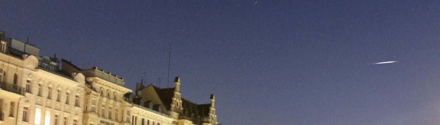 No 7 was hard to capture, because the Flare came in at a rather low elevation, so I chose a gap between two buildings, hoping that my compass was guiding me properly (it is very often considerably off due to all the radiation pollution in the city). I was confident that SV 97 wouldn’t let me down. And it didn’t: Although it was only a +0.7mag and despite shooting directly into a street light, the Flare is still visible as a very faint streak between the two buildings – I called it Camouflage Flare.