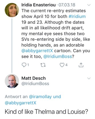That’s the kind of motivation I needed as propellant to launch the IriDiary for IridiumNEXT’s Launch-5. Thanks for rooting for OxidanSky, Matt!